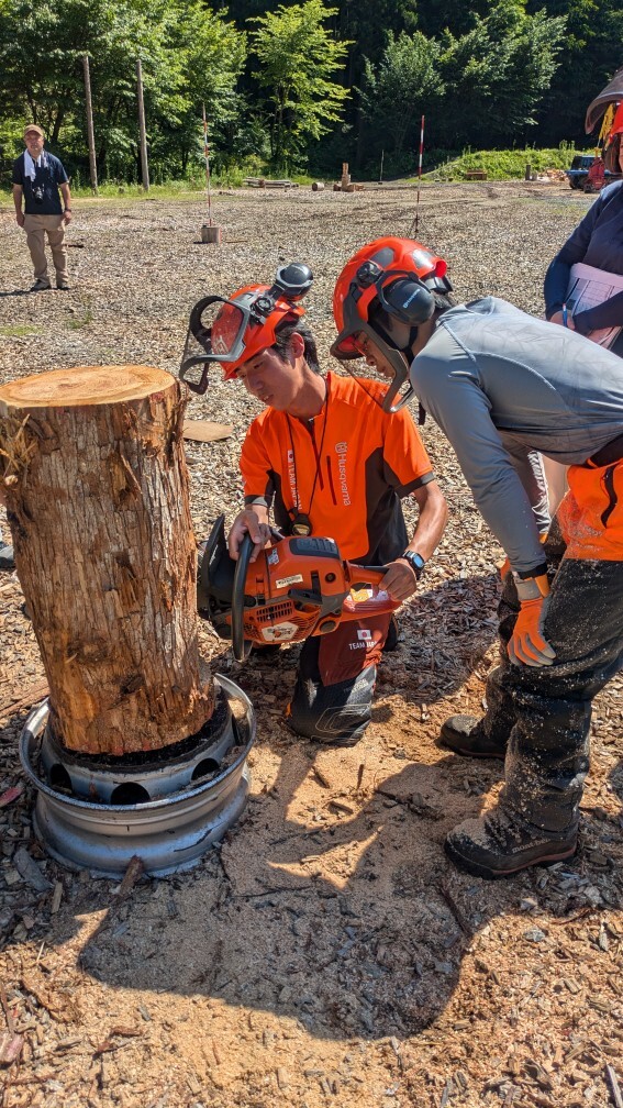 午後の実技練習では、伐木競技の世界大会への出場経験のある講師の指導を受け、積極的に練習に取り組む選手たちの姿が見られました。